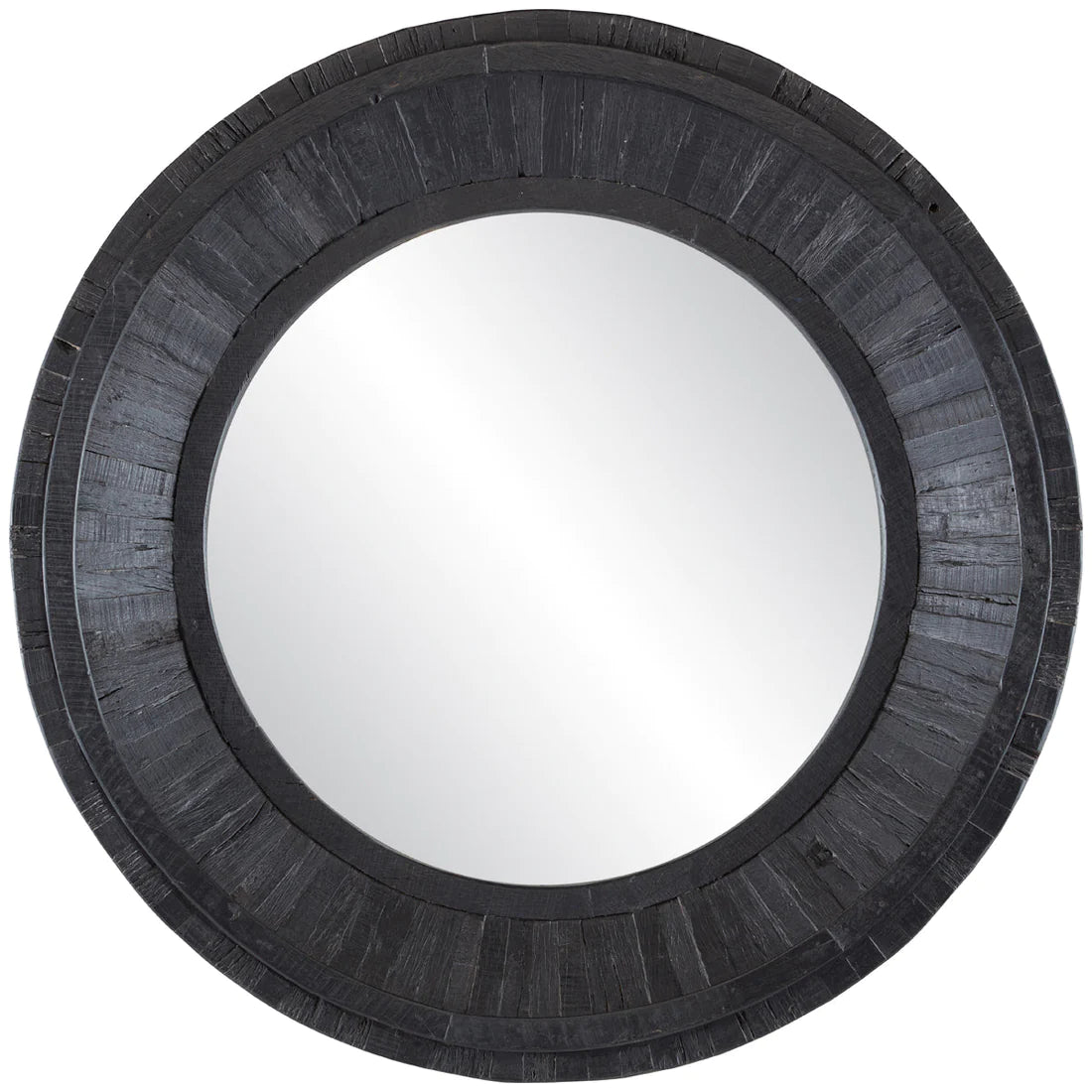 The Kanor Mirror is artfully made from arranged pieces of reclaimed wood. With a round whitewash finish and naturally distressed frame, the Kanor's simple elegance has sustainability in mind. Place this mirror anyplace in the home where a subtle sophistication is needed. Includes one metal cleat for installation.