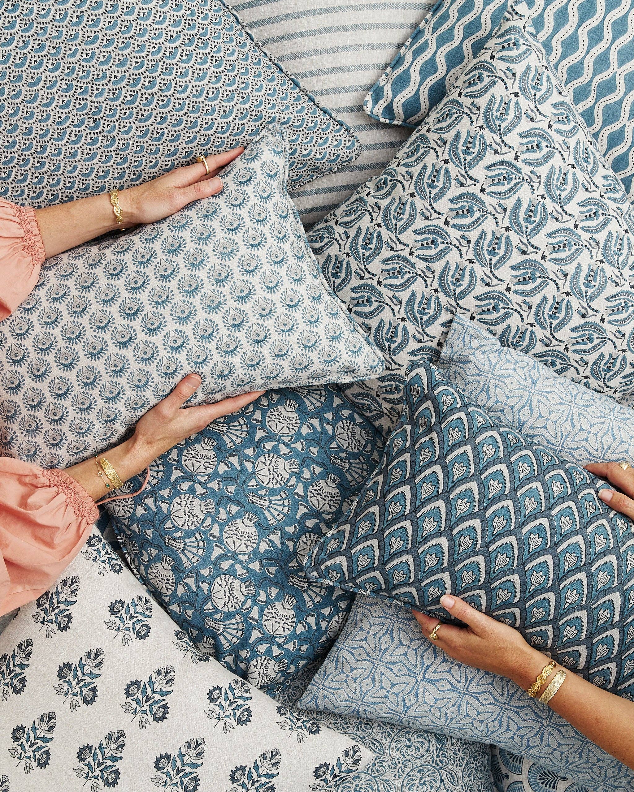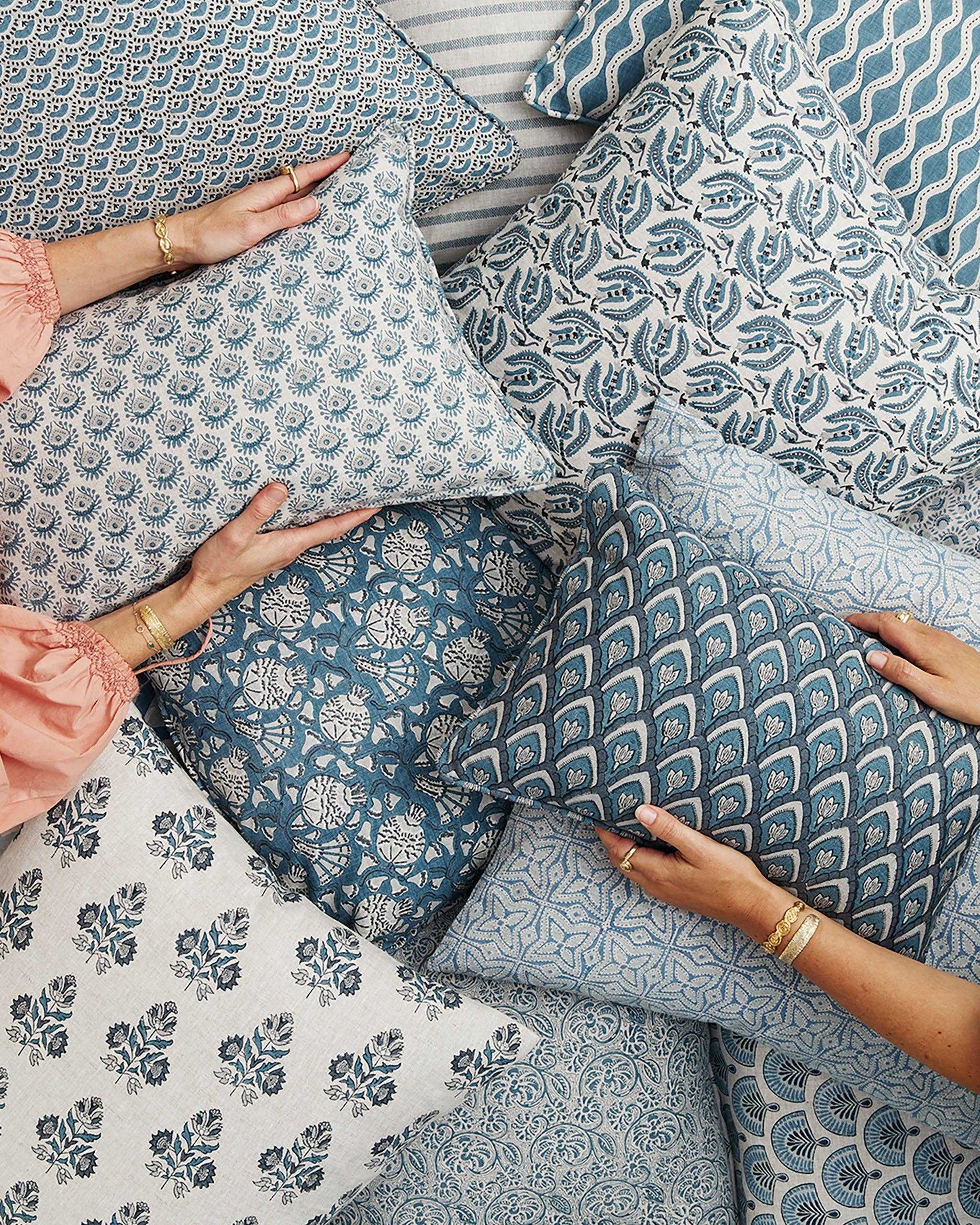 Reminiscent of the opulent hand painted walls found in the City Palace in Udaipur, Haveli will bring bold colour to your home. This design has been hand block printed by artisans in India. * 30cm x 45cm / 12" x 18" * Pipe edge finish * 100% linen . Pillow insert included.