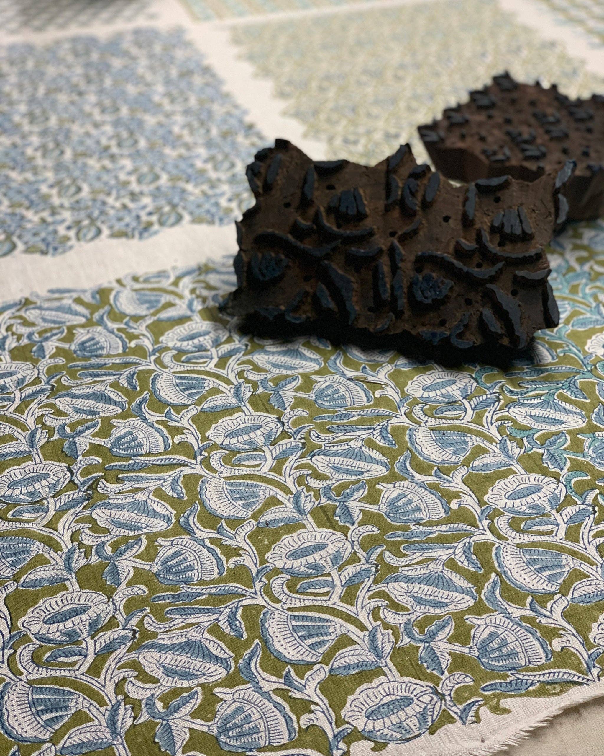 CARE INSTRUCTIONS: Cold machine wash separately on a delicate cycle with a very minimal amount of mild detergent. Do not tumble dry, soak or bleach. Iron at medium setting if necessary. For spot cleaning, gently dab the area with water (do not rub). Due to the nature of hand printed fabrics, variation in colour and pattern may occur. Keep out of direct sunlight to avoid excessive fading.